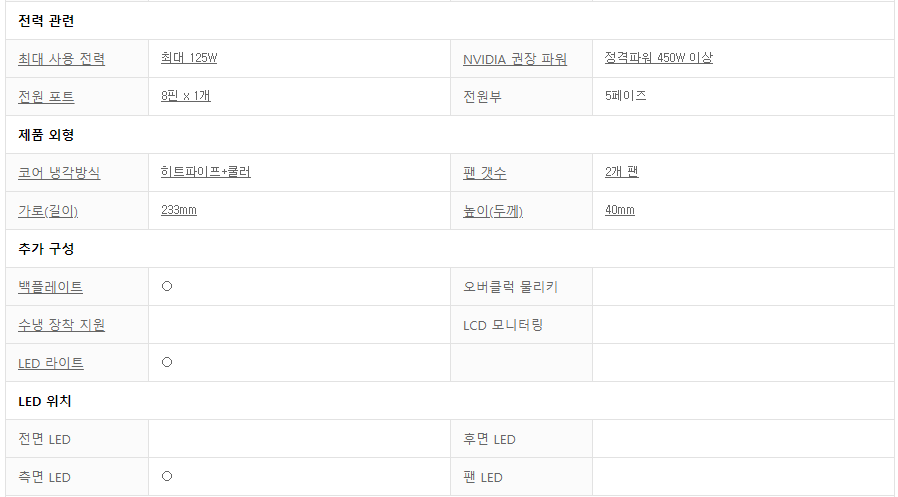 (2) 그래픽 카드 - 파워 : 그래픽 카드에 필요한 전력이 어느 정도인지 확인하고 해당 전력을 공급해줄 수 있는 파워를 선택해야 한다.